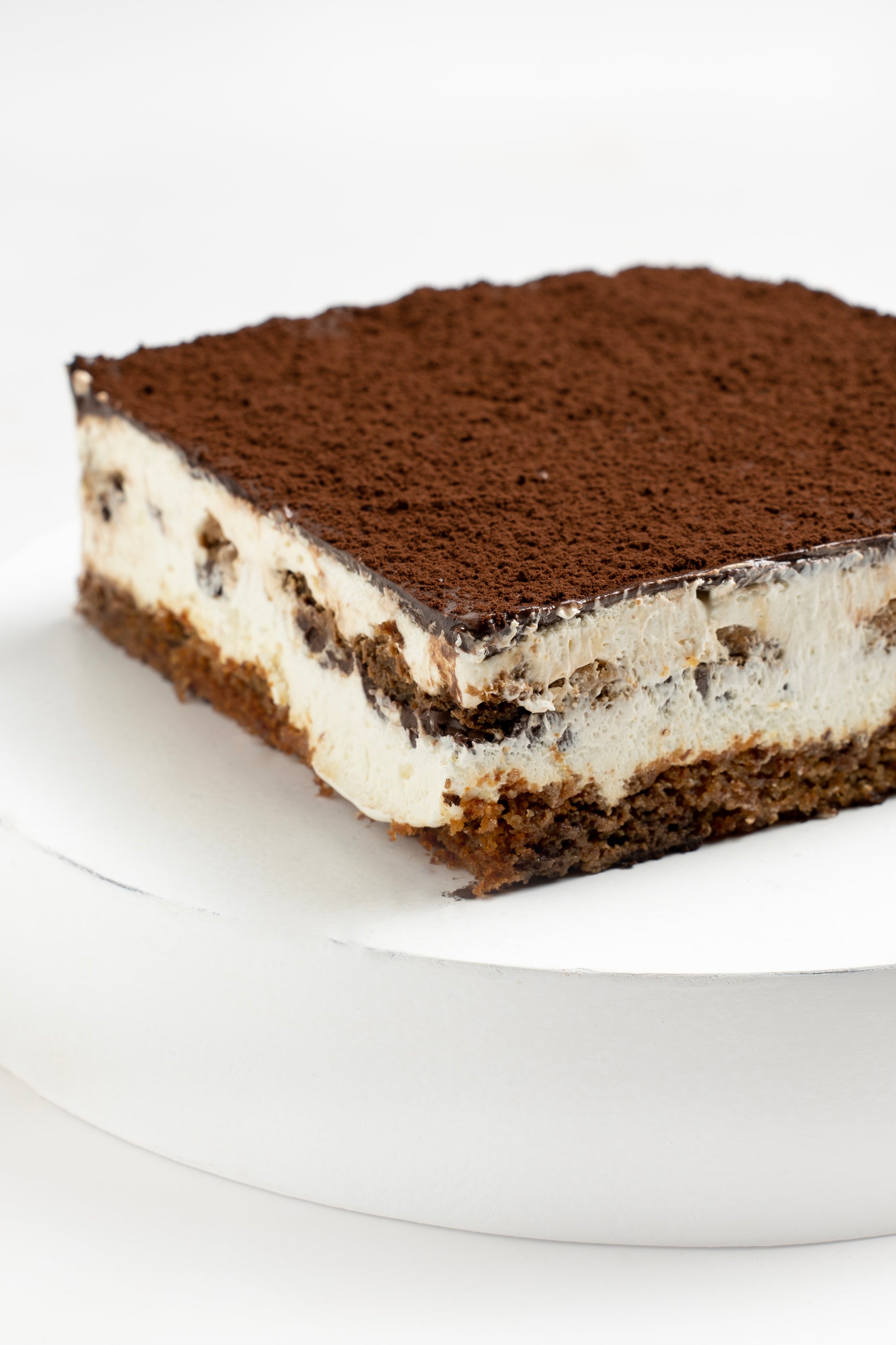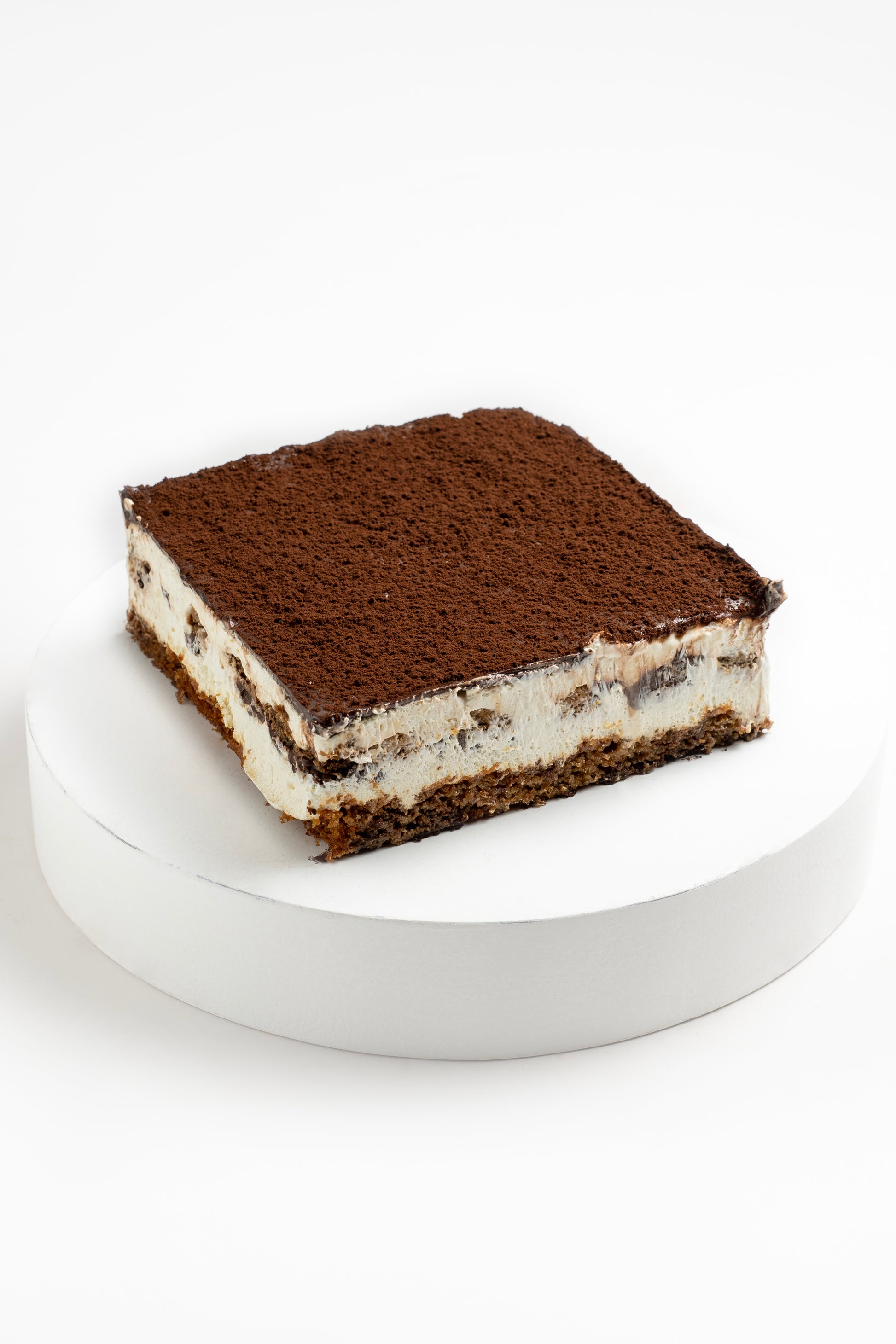 This cake is made from layers of espresso soaked almond biscuits, tiramisu cream and dark chocolate ganache.