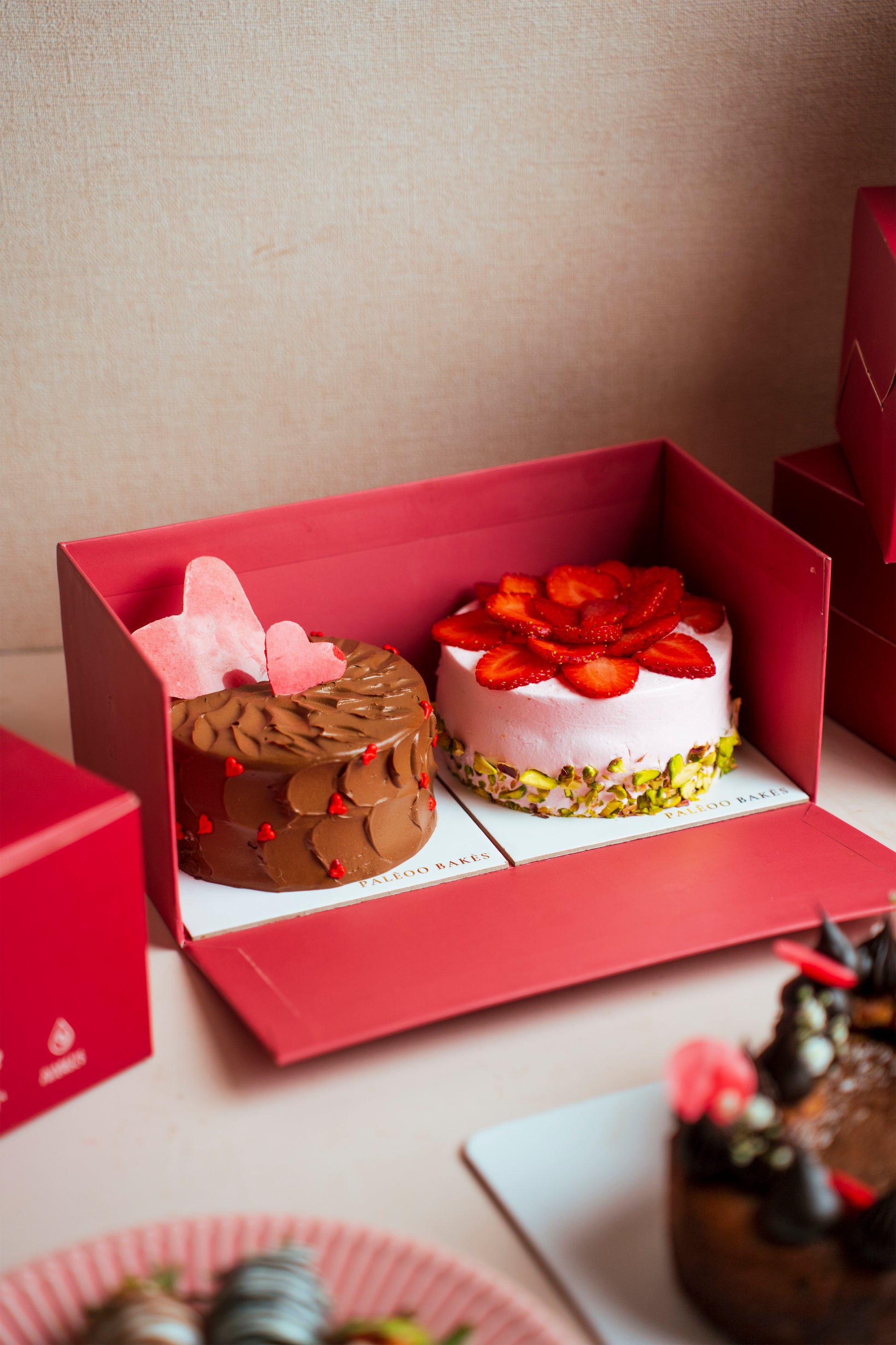 A beautifully curated box of two indulgent pastries, featuring our Pistachio Strawberry Pastry (350 g) and Dark Chocolate Mousse Pastry (350 g) elegantly presented in a perfect gift box. Thoughtfully crafted to be completely sugar-free and gluten-free, each cake offers refined flavour, delicate texture, and irresistible indulgence. Designed for sharing, gifting, or savoring together, this duo is the ultimate expression of love - sweet, intentional, and unforgettable.