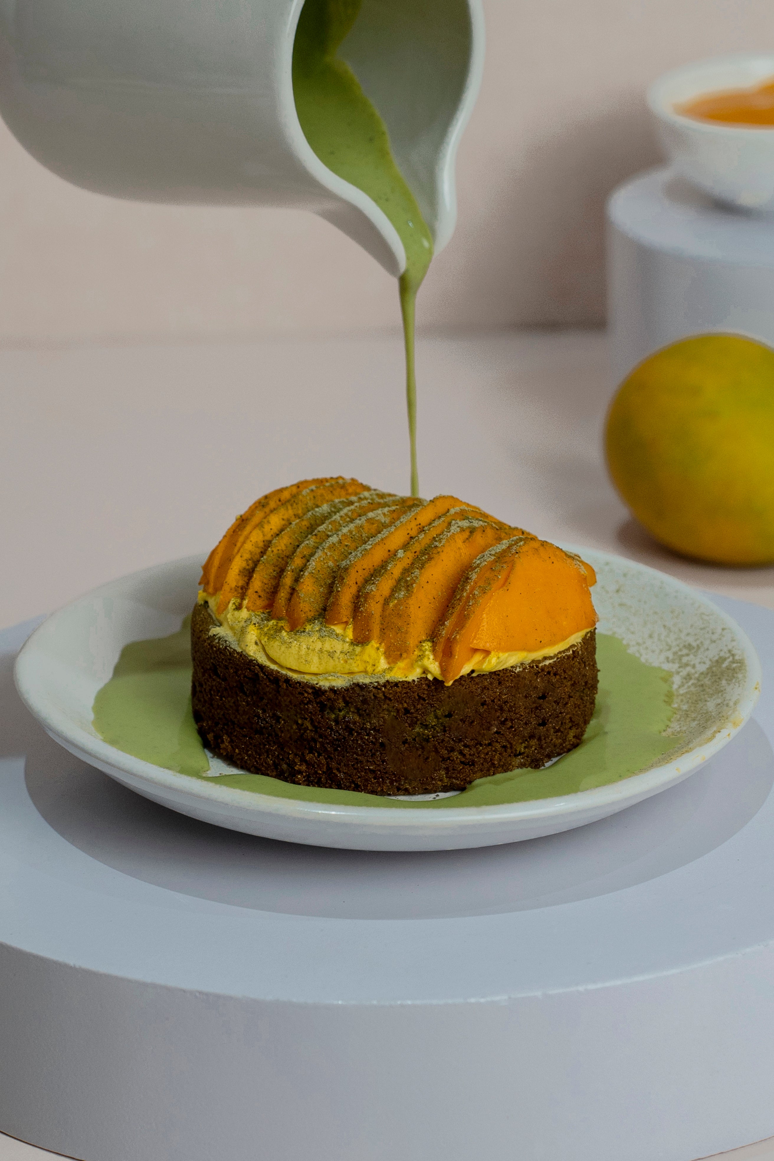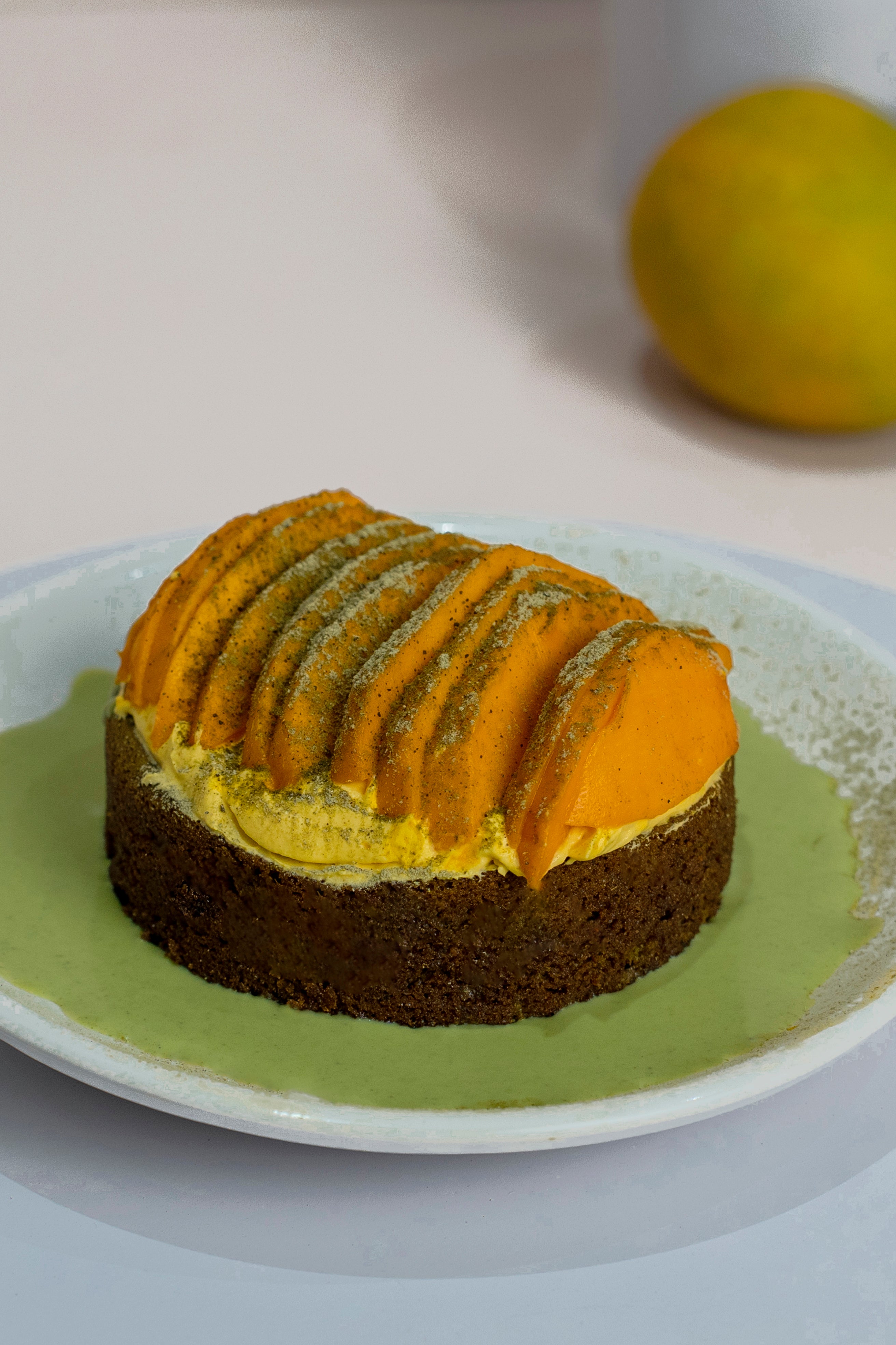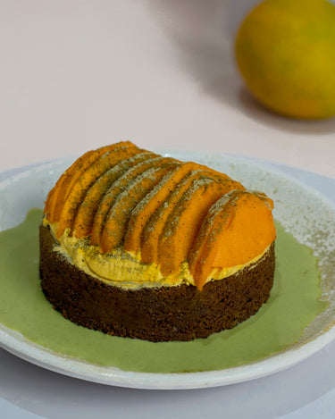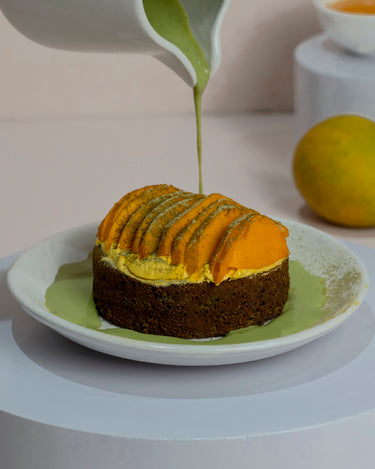 A light matcha sponge soaked generously in a balanced matcha milk blend, creating a moist and delicate base. Paired with fresh mangoes, the dessert offers layers of flavour - gentle bitterness from matcha and a sweet, juicy lift from the fruit, making it both indulgent and refreshing. Sugar & Gluten free