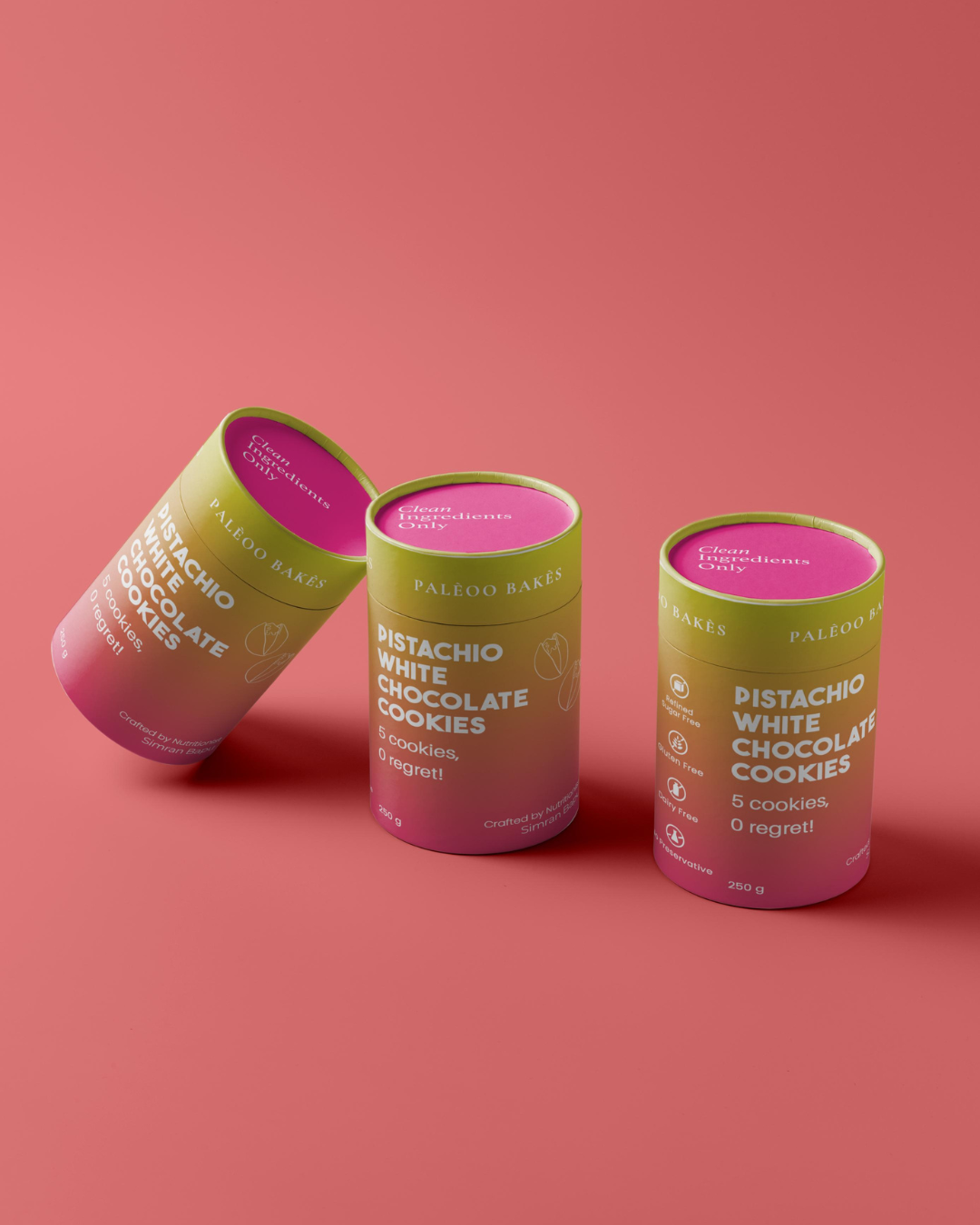 Crafted from a blend of almond and pistachio flours, these cookies offer nutty flavour and a satisfying crunch infused with sugar free and vegan white chocolate chips, each bite delivers a touch of creamy sweetness that perfectly complements the robust nutty base.