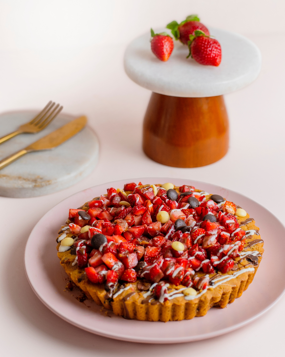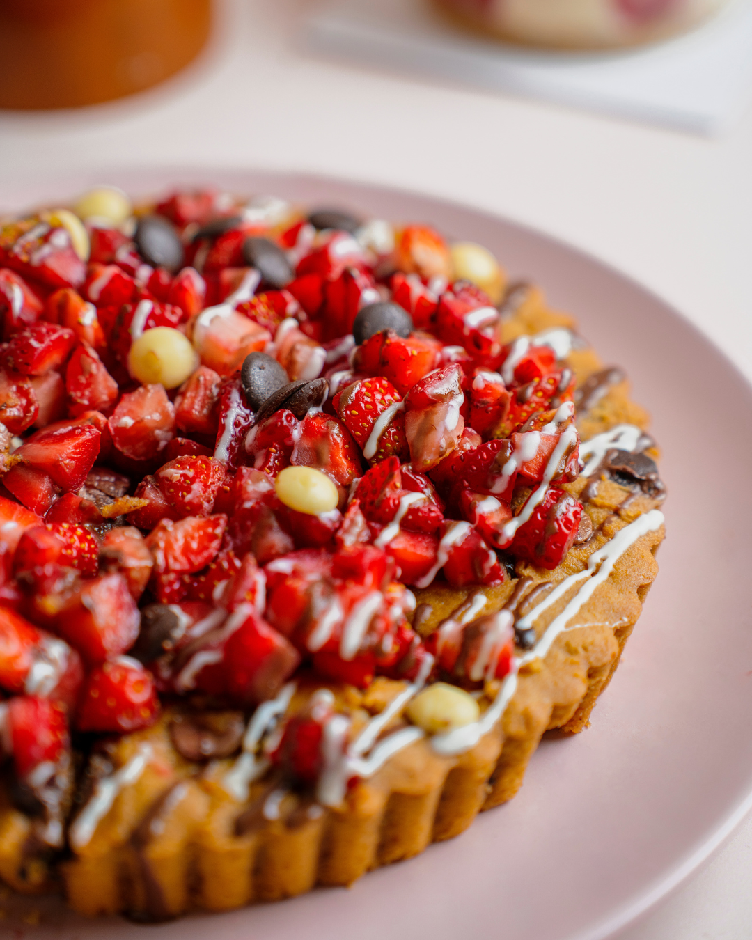 Prepare for a chocolate lover's dream with our Strawberry Triple Chocolate Crunch Cake! Luxurious layers of dark, milk, and white chocolate pastry come together in perfect harmony, studded with crunchy praline and fresh chopped strawberries for a delightful textural adventure. At a generous 1 kg, this showstopper delivers rich, complex flavors without any sugar or gluten. Pure indulgence, reimagined!